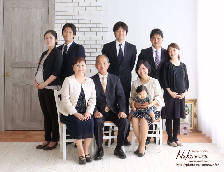 中筋家の家族写真 2015年5月3日家族写真nakamura 中筋家の家族写真です♪ 県外にいらっしゃる子供さん達がゴールデンウィークで帰省し、 「ひさしぶりに家族みんなが揃ったので」という家族写真です☆ なにかの記念日も大切ですが、家族の再会を家族写真に残すのも素敵ですね! みなさんとっても良い笑顔でした☆ ご来店、誠にありがとうございました☆