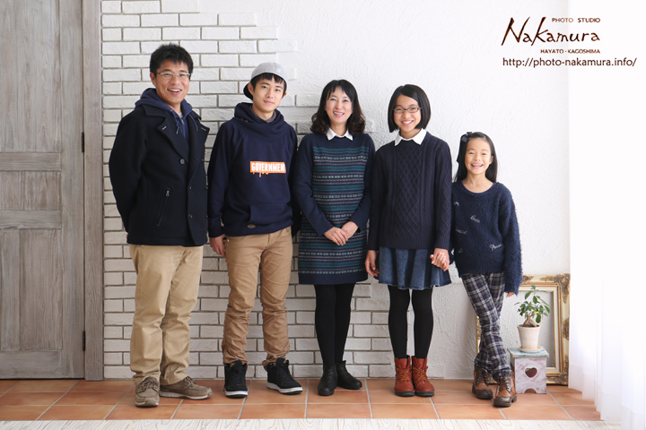 野妻家の家族写真 2014年12月7日家族写真nakamura 野妻家の家族写真です♪ 年賀状用の家族写真です!でも、年賀状に使ったのは、別なパターンの写真です☆ お兄ちゃんも妹さん達も大きくなって、ご両親を追い抜きそうですね~! そんな雰囲気を撮影する為に、横一列に並んでいただきました♪ 家族の成長を記録する家族写真も素敵ですね。 ご来店、誠にありがとうございました☆