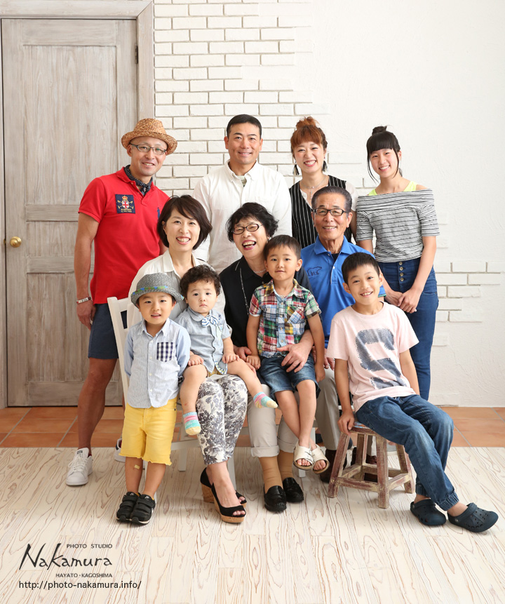 古希祝いの家族写真 2016年6月12日家族写真nakamura 出本家のお母様の古希祝い記念写真です♪ 鹿屋市からと、鹿児島市からと、霧島市からと!!鹿児島県各地から集まっていただき、ありがとうございました☆ みんな揃って家族写真が撮れて良かったです~♪みなさんの素敵な笑顔も素晴らしいですね~♪ 古希祝い、おめでとうございます!! ご来店、誠にありがとうございました~☆