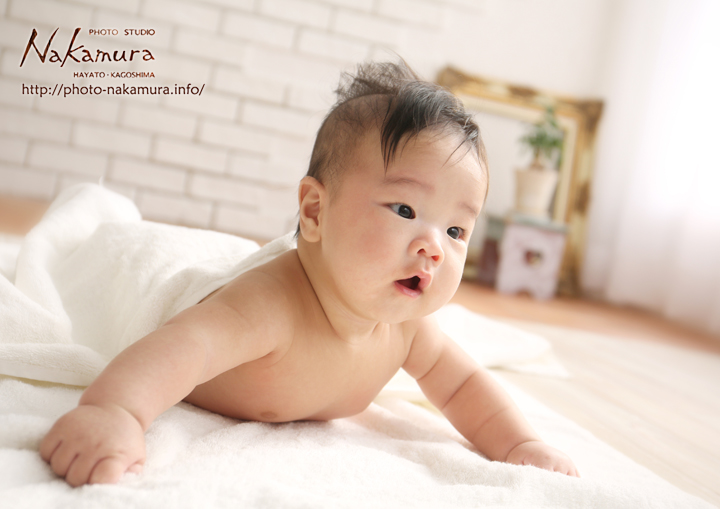 やまと君の百日祝い 2014年11月22日お宮参り・百日祝いnakamura やまと君の百日祝い記念写真です♪ やまと君は、4ヶ月になった赤ちゃんで、首もしっかりしていて、 頑張ってお顔を上げてくれました! 最初は、ご機嫌ななめでしたが、じょじょに慣れてきて、笑顔の写真も撮れました! はだかんぼが大好きなのでしょうか? ご来店、誠にありがとうございました☆
