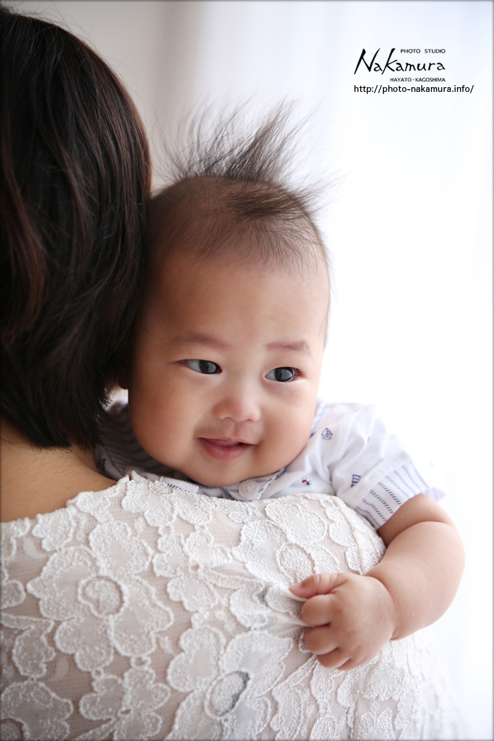 りつ君のお宮参り 2017年7月9日お宮参り・百日祝いnakamura りつ君のお宮参り記念写真です♪ お宮参りといっても、5ヶ月になった赤ちゃんなので、首もすわっていて、しっかりしてますね♪ ママにしっかり掴まって、かわいい表情をしてくれました~♪ 元気に成長してくださいね~☆ ご来店、誠にありがとうございました~☆ ☆お宮参り記念を、カワイク残すなら、鹿児島県霧島市の中村写真工房へ☆